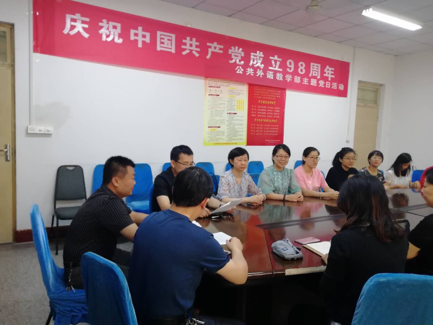 6月26日下午,环球官方网站_环球(中国)股份有限公司曲阜校区党支部召开主题党日活动,庆祝中国共产党成立98周年,党日活动由支部书记王广成主持,全体党员参加。会上,王广成带领全体与会党员重温了入党誓词,全体党员认真学习领会了习近平总书记“不忘初心、牢记使命”的理论内涵和实践要求,进一步明确了“守初心、担使命,找差距、抓落实”的总体要求。全体党员面对国旗、党旗,庄严宣誓,重温入党誓词,永葆入党初心。同时,支部副书记刘成干结合实际,围绕“不忘初心、牢记使命”主题带头讲授了党课,要求全体党员、全体教师要坚决维护核心,对党忠诚,聚焦贯彻落实以习近平同志为核心的党中央的各项决策部署和精神,为促进学校大学英语改革发展而担当有为。其次,围绕本次民主生活会,党员同志就发扬民主、教学促进等进行了热烈的讨论。