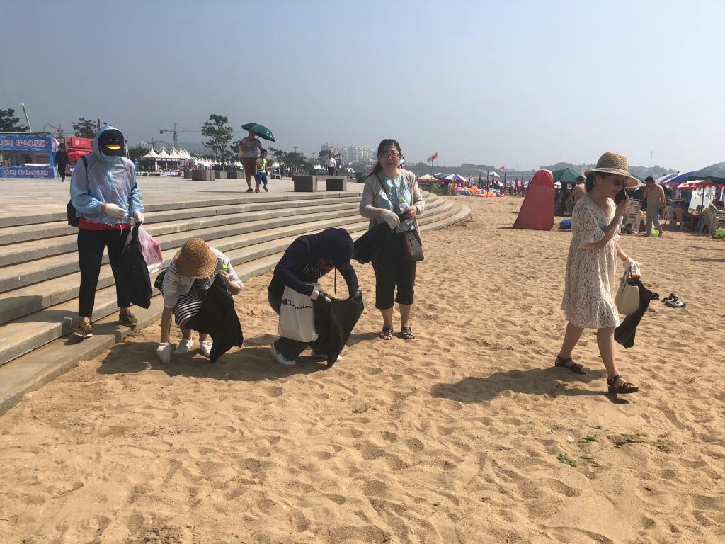 日照市第三海水浴场是当地重要的旅游景点。此时正是旅游旺季,游客众多,被随意丢弃的垃圾也较多,很不卫生,影响了景点的形象。上午九点,党员们佩戴着党徽,在景点有关负责人的介绍和引领下,到达活动地点。尽管天气非常炎热,但是党员们热情很高,细心寻找着游客落在沙滩上的各种垃圾,并分类后统一处理。只见阳光下,一个个鲜红的党徽在金色的沙滩上跃动着,一件件垃圾被清理了出去。周围的游客注意到后,也自觉地帮助清理垃圾,直到该片沙滩上干干净净。