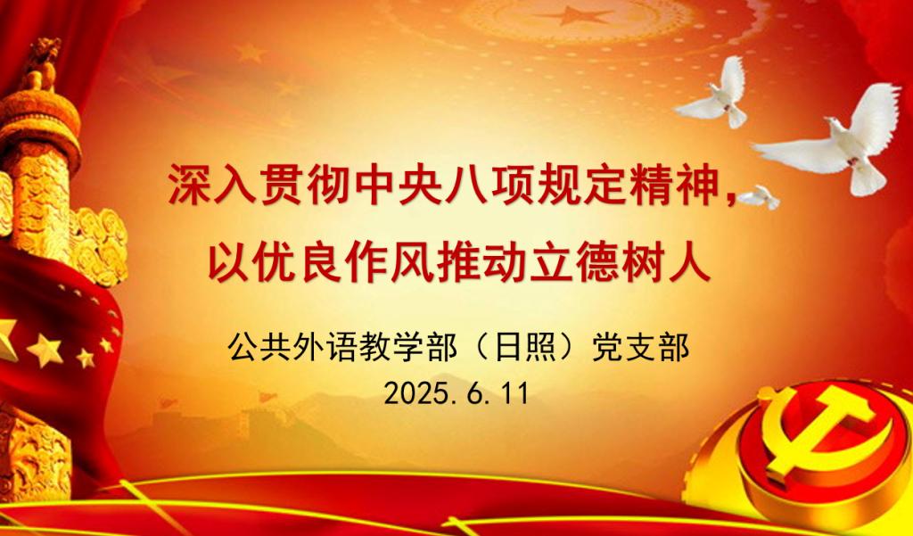 本次党课的题目是“深入贯彻中央八项规定精神,以优良作风推动立德树人”。党课共分三个部分。一是领会八项规定精神核心要义,提高思想认识。其中提到,中央八项规定是作风建设的“金色名片”,关乎党的生死存亡,因此党员教师必须时刻保持清醒的头脑,牢记自己的党员身份和教师职责,以高标准严格要求自己,在思想上筑牢廉洁自律的防线,自觉抵制各种不良风气的侵蚀,做到不越红线、不触底线。二是警惕违反八项规定的风险点,排除风险隐患。杜庆凤列举了近年来高校存在的违规风险以及损害教师形象的具体案例和做法,特别结合了近期单位通报的个别老师有违师德师风以及教学纪律的问题,要求党员教师们务必引以为戒,筑牢廉洁防线,谨防出现有违反八项规定以及师德师风的现象,要珍惜自己的党员以及大学教师身份,不做任何有损单位声誉以及自身形象的事。三是践行中央八项规定精神,推动立德树人。这一部分聚焦如何深入贯彻中央八项规定精神,推动立德树人,并提出了具体的要求,包括学纪知纪,筑牢思想防线;廉洁从教,树立良好形象;改进教学,提高教学质量;注重师德,营造教育氛围;身先示范,推动立德树人等。最后杜庆凤强调,贯彻中央八项规定精神是一项长期而艰巨的任务,需要每一位党员教师共同努力,全体党员教师要紧密团结在以习近平同志为核心的党中央周围,以高度的政治责任感和使命感,认真贯彻落实中央八项规定精神,以良好的师德师风和廉洁自律的形象,为学校各项事业高质量发展、为党的教育事业繁荣发展做出更大的贡献!