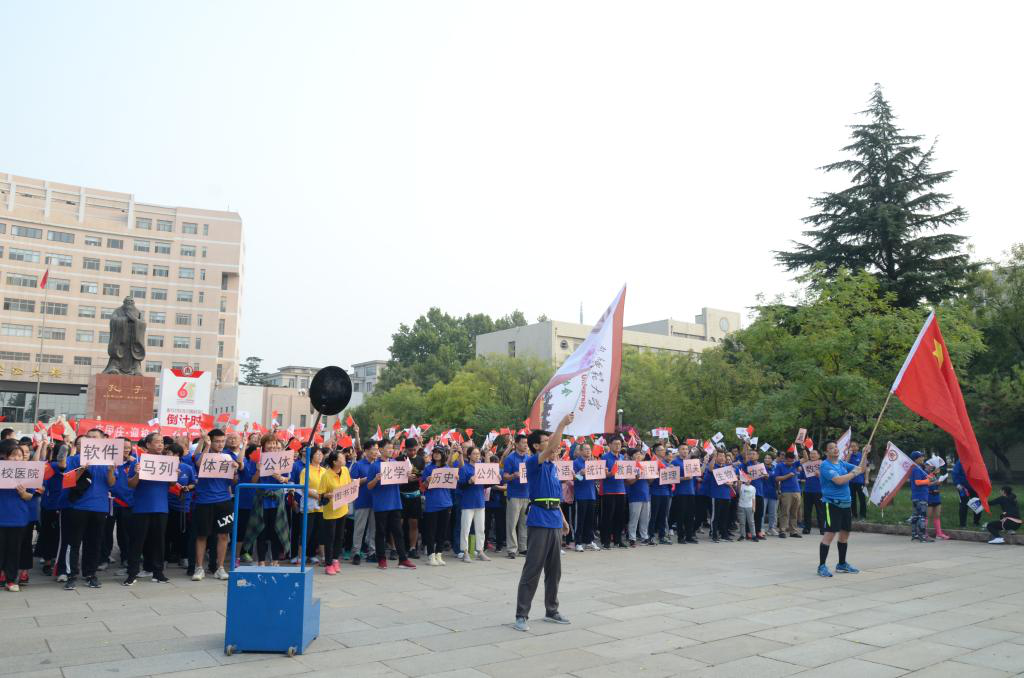 庆祝新中国成立71周年、曲阜师大建校65周年,展示曲园教工“团结、奋进、积极、创新”的精神风貌,10月1日上午,环球官方网站_环球(中国)股份有限公司多位教师参加环球官方网站_环球(中国)股份有限公司 “庆国庆·迎校庆”马拉松比赛暨环校园走活动。秉承“犁牛之子”的精神,健步行走在金秋十月阳光明媚的曲园,用活力的汗水记录曲阜师大65周年校庆的光辉历程。通过校园马拉松活动,老师们强身健体,以饱满的热情和精神投入大学英语教学,以实际行动共祝祖国华诞。