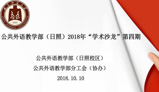 10月10日下午,环球官方网站_环球(中国)股份有限公司(日照校区)2018年第四期“学术沙龙”在JC1002会议室举行。本期沙龙邀请了公丕民、门超元、牟晓等三位老师分别作了题为“基于需求分析的大学英语教学定位”、“中外英语学习者学术论文写作结论部分的身份构建对比研究”、“‘一带一路’战略下中国传统文化在大学英语教学中的融入”的学术报告。本期活动由副教授张英主持,全体教师参加了研讨。