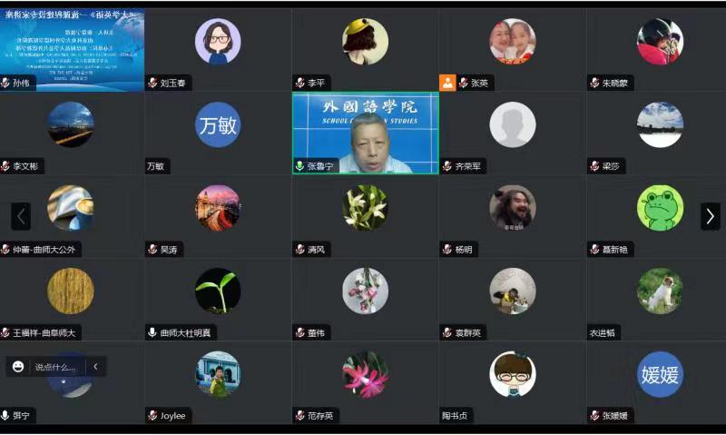 7月19日上午,环球官方网站_环球(中国)股份有限公司邀请我校优秀校友、南京林业大学外国语学院副院长、张鲁宁教授作“大学英语一流课程建设”线上专家报告会。报告会由副主任孙伟主持,主任王福祥、各教研室主任、各课程建设团队负责人及其全体骨干成员参加。
