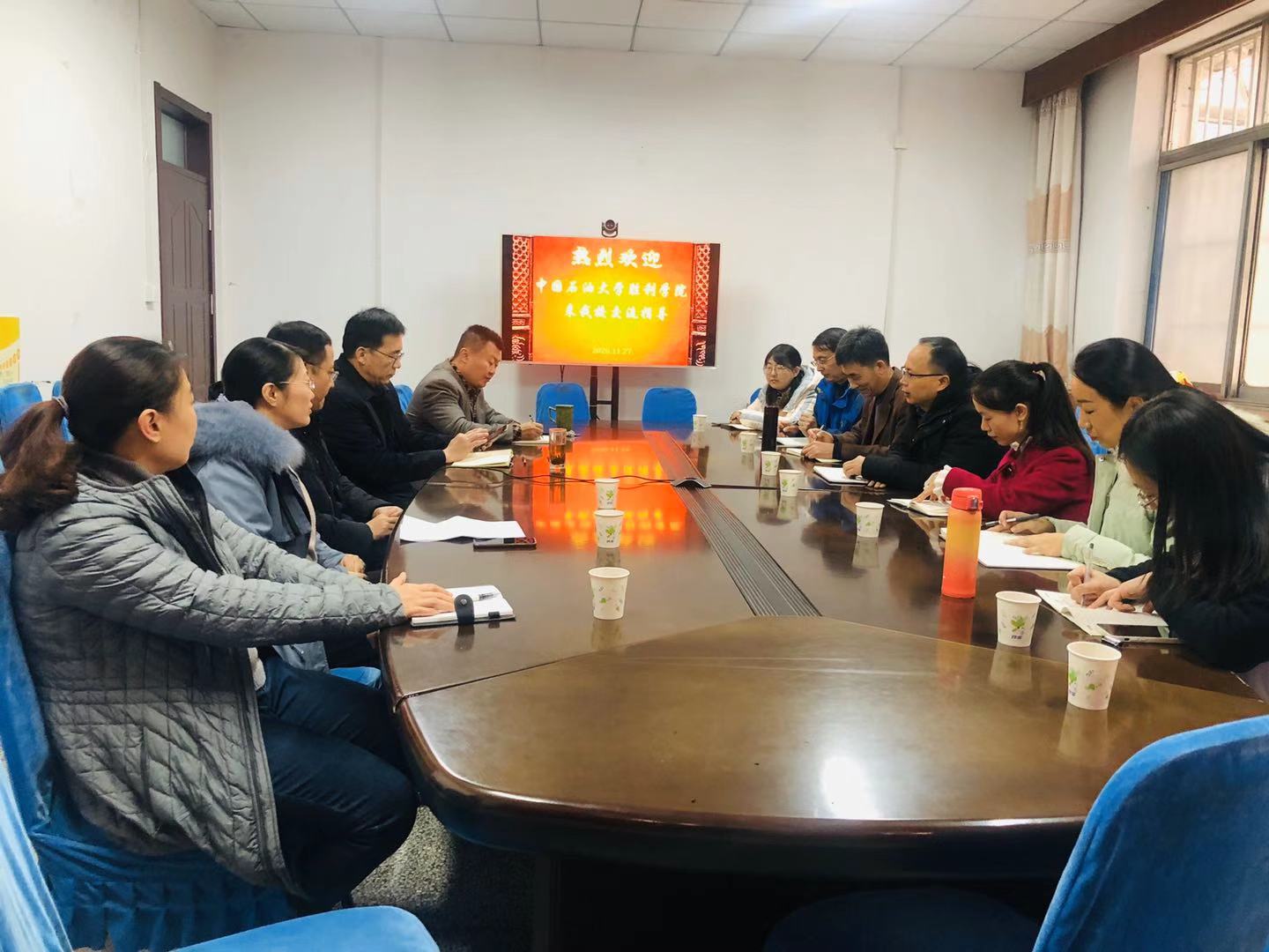 2020年11月27日,中国石油大学胜利学院基础科学学院副院长孙涛率外语系主任盛庆全、副主任庞晓峰以及骨干教师一行7人来我部访问。环球官方网站_环球(中国)股份有限公司主任王广成、主任助理王显明亲切会见了来访客人,在单位会议室召开了两校交流会。会议邀请了外国语学院院长秦洪武、院长助理高歌参加了交流。