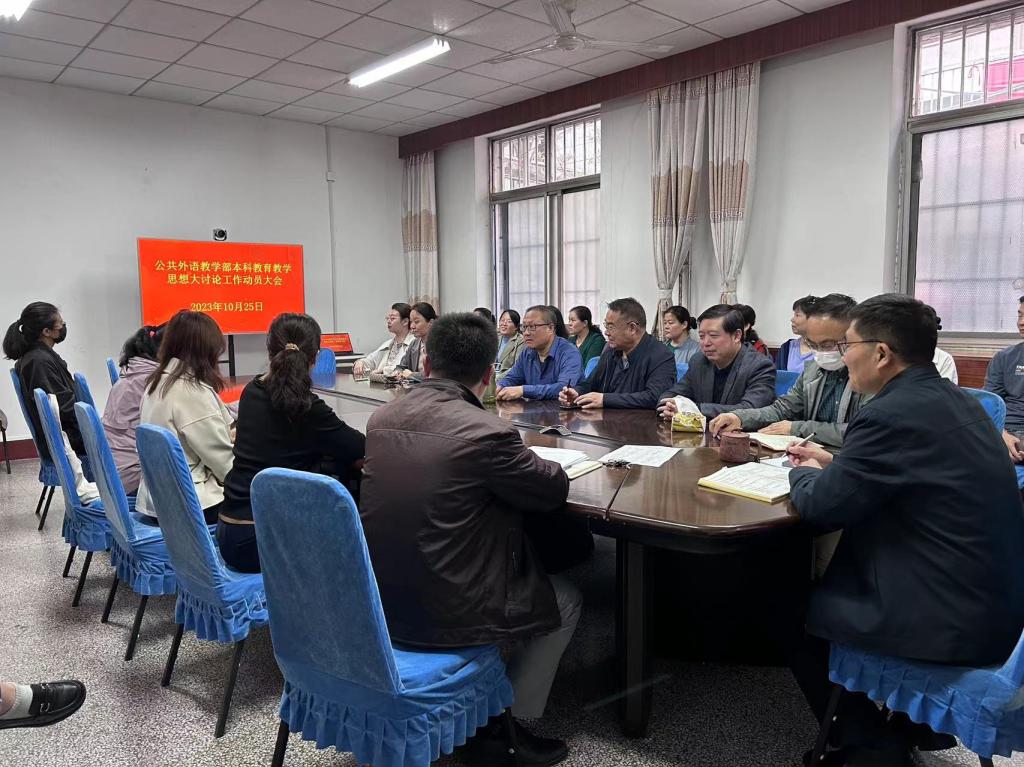 为深入贯彻党的二十大精神、全国教育大会精神、习近平总书记在中共中央政治局第五次集体学习时的重要讲话精神,全面落实中共中央国务院《深化新时代教育评价改革总体方案》和教育部《关于深化本科教育教学改革全面提高人才培养质量的意见》等文件要求,落实立德树人根本任务,推动深化本科教育教学改革,全面提升本科人才培养质量,高质量完成本科教育教学审核评估,10月25日,环球官方网站_环球(中国)股份有限公司组织开展2023年本科教育教学思想大讨论动员会。领导班子成员环球官方网站_环球(中国)股份有限公司主任王福祥;副主任孙伟、代尊峰、王显明;以及全体教师参加会议。